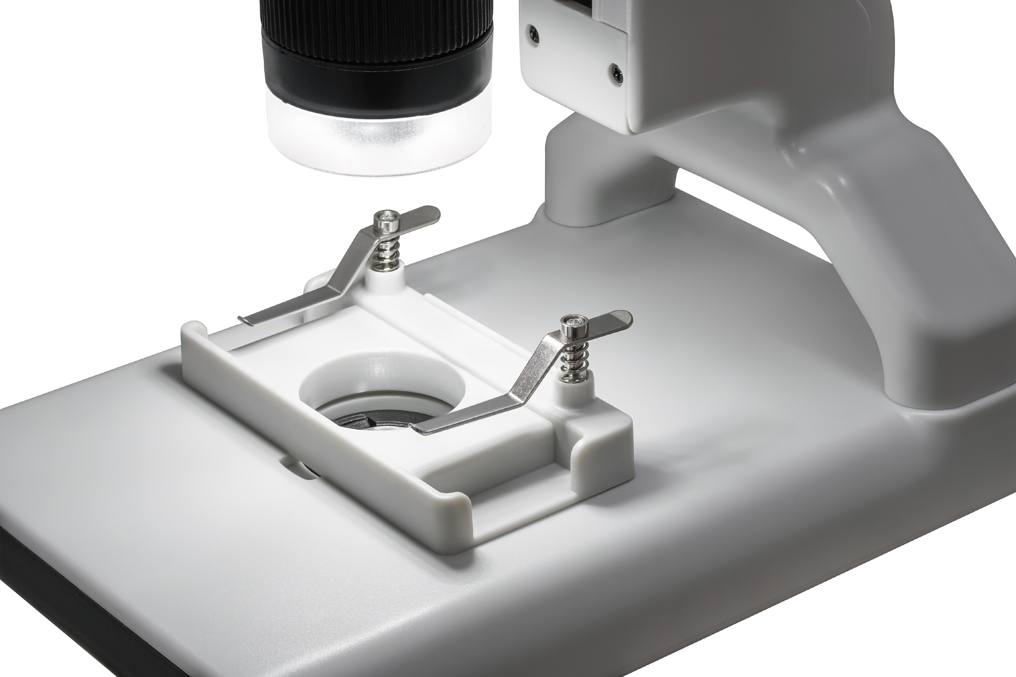 In addition, one of the main features of this model is the ability to work on battery. That makes the microscope mobile and allows you to work away from the power outlet.