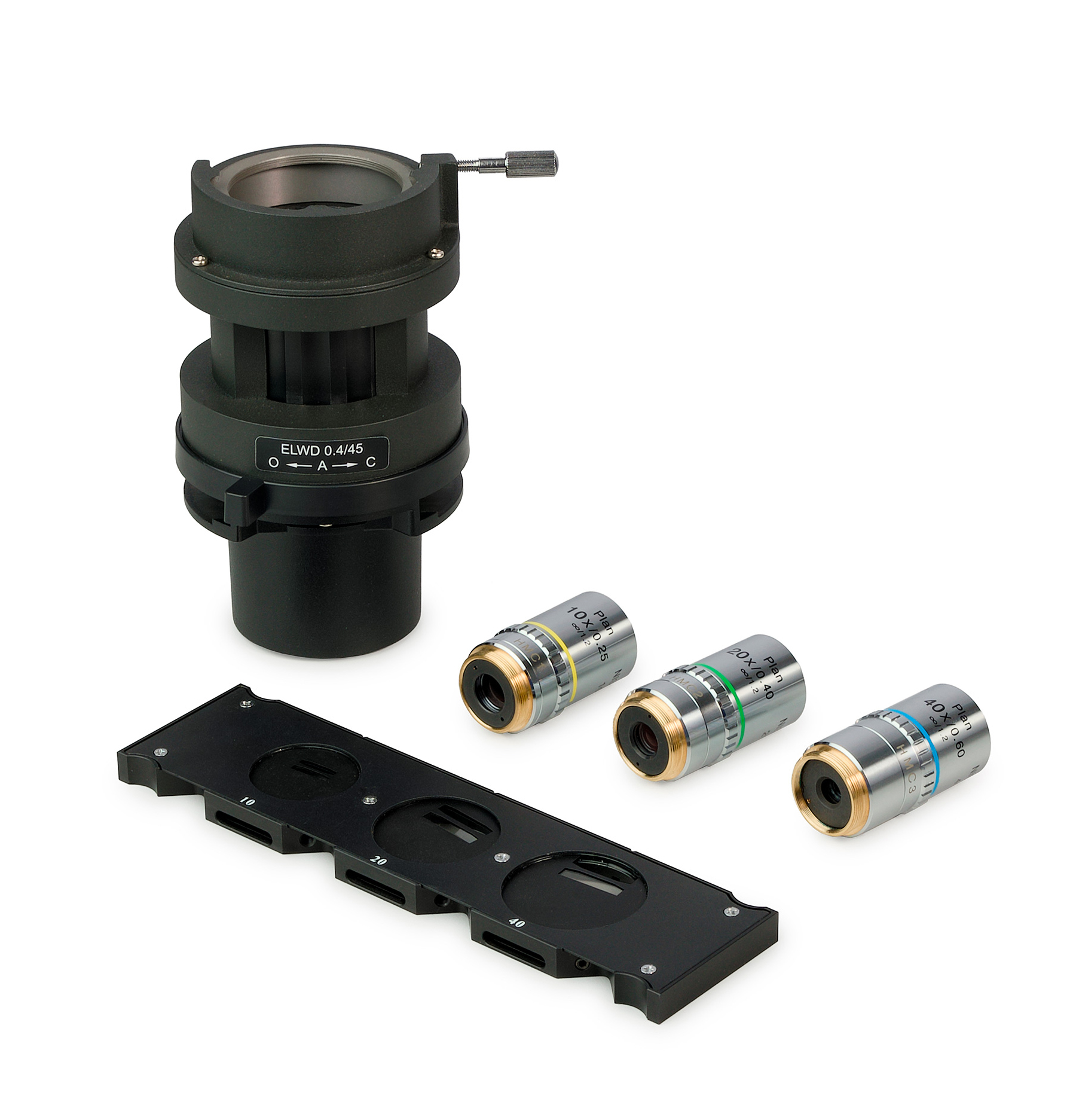 - Infinity plan achromatic Hoffman objective: 10x/0.25 ∞/1.2, parfocal distance: 60mm